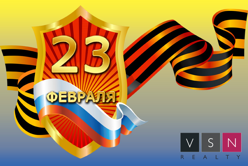 Компания VSN Realty поздравляет всех мужчин с Днем защитника Отечества – праздником мужества, смелости, благородства и чести, олицетворяющим силу и мощь Российской державы, любовь и преданность своей Отчизне, способность заботиться и защищать свою семью!